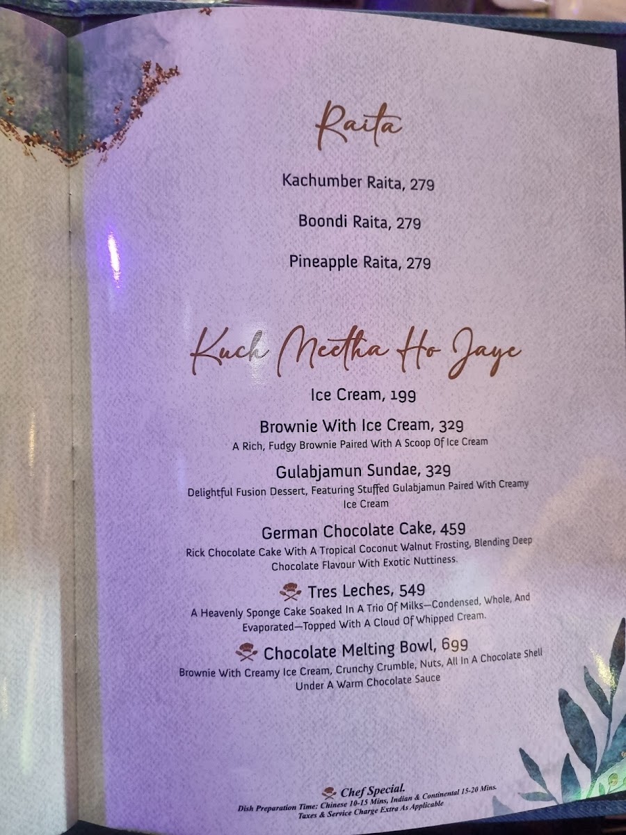 Main courses range from hearty dishes like Butter Chicken Pasta and Khaas Paneer Tikka to varied options such as Turkish Chicken and the vibrant Dragon Rolls, offering something for every palate. For dessert, comforting treats like the Hot Chocolate Brownie with Vanilla Ice Cream provide a warm and satisfying finish.